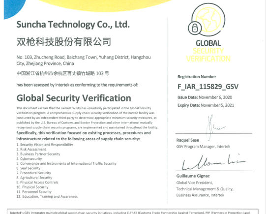 當(dāng)前位置:首頁 > 認(rèn)證咨詢案例 > 恭賀雙槍科技股份有限公司一次性通ITS 新版GSV認(rèn)證