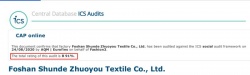 恭賀佛山市順德區卓優紡織品有限公司一次性通過AQM ICS 91分B級審核結果