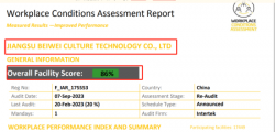 • 祝賀江蘇百威文化科技有限公司2023年順利通過ITS-WCA驗廠